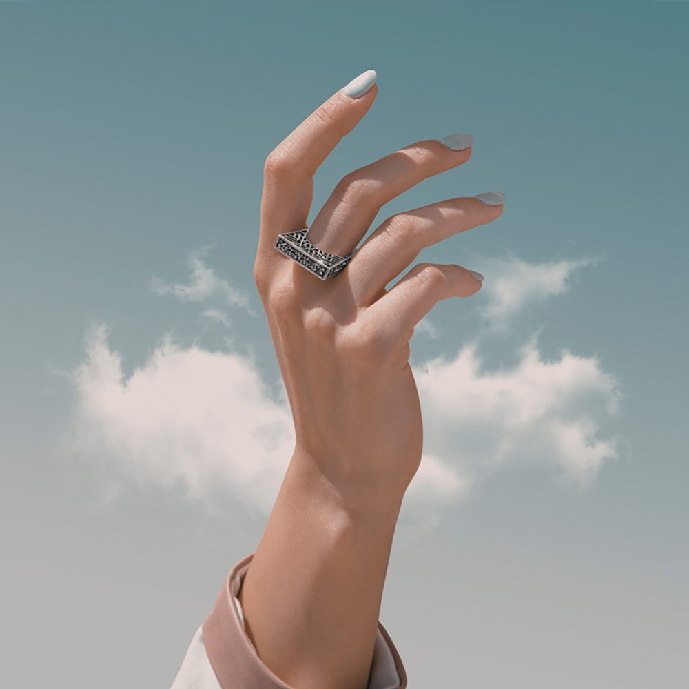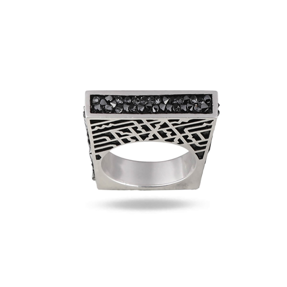 انگشتر الموت نقش دال با کریستال راکس دودی نقره